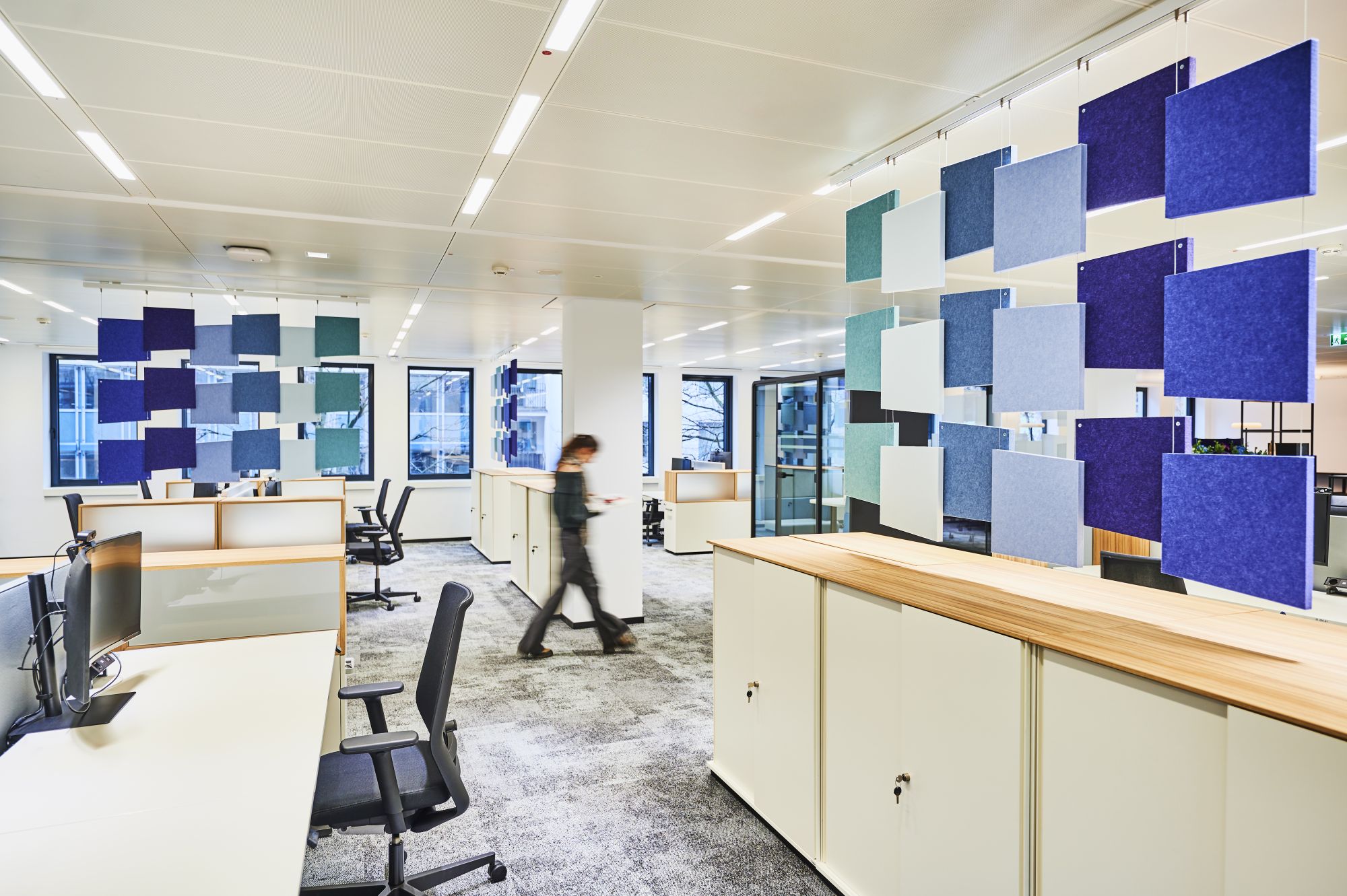 Das Gebäude der Hauptverwaltung ist zum Zeitpunkt der Betrachtung nicht effizient ausgenutzt. Viele Bereiche stehen leer, da ein Großteil der Mitarbeitenden die Möglichkeit von Homeoffice wahrnimmt. Da einzelne Etagen teilweise „verwaist“ sind und andere Bereich „aus allen Nähten“ platzen, wurde es notwendig, ein neues Konzept für die Nutzung der Hauptverwaltung zu entwickeln. Neben Potentialen für ein zukünftiges Wachstum, sollten auch neue Arbeitsweisen wie New Work betrachtet werden. Nach ausgiebiger Nutzerbedarfsanalyse und Konzeptentwicklung traf die Geschäftsleitung die Entscheidung, „New Work“ in einer Pilotfläche (eine Etage) zu testen und die Mitarbeitenden aktiv in den Veränderungsprozess mit einzubinden. Die Mitarbeitenden wurden neben der Vorstellung von neuen Arbeitsmöglichkeiten und Kollaborationsflächen auch im Umgang mit Desksharing und den damit verbundenen Veränderungen der Arbeitsprozesse und -Abläufen geschult. Neben den räumlichen Veränderungen wurde großes Augenmerk auf das Thema Mitarbeiterbeteiligung gelegt. Hier wurden die Mitarbeitenden umfassend mit eingebunden.