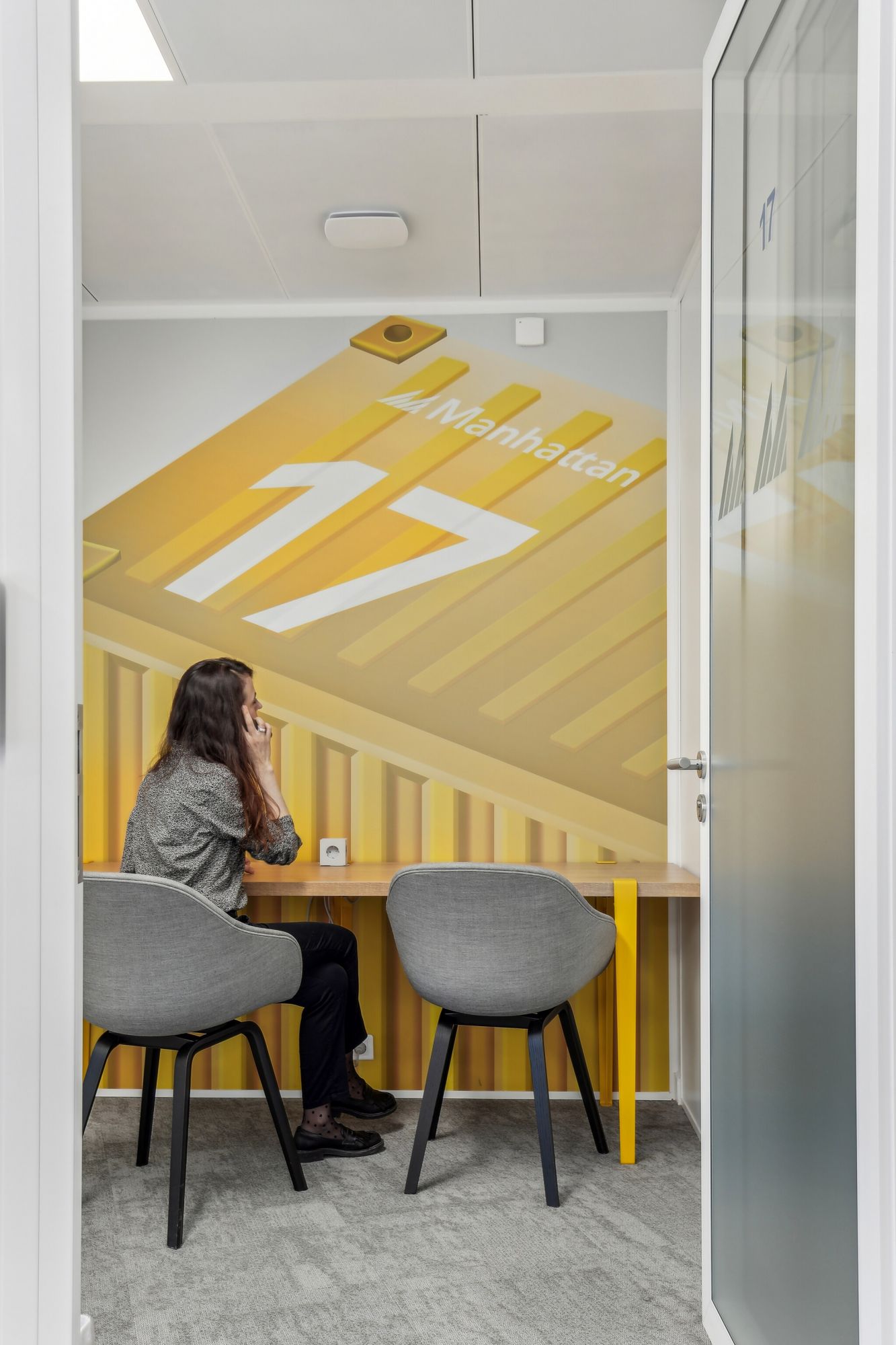 A nod to the container, an emblematic object of Manhattan Associates' activity, is integrated into certain spaces