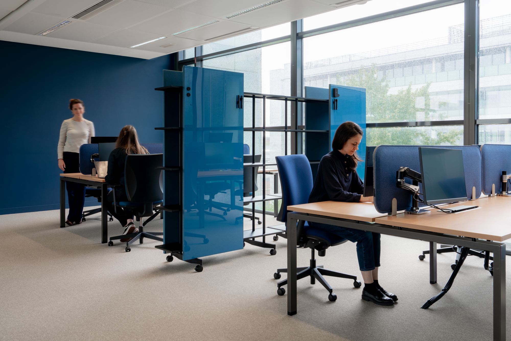 Chaque typologie d’espace – bureaux fermés, open spaces, cabines, salles de réunion – a été pensée pour répondre à des usages spécifiques, favorisant ergonomie, confort et performance collective.