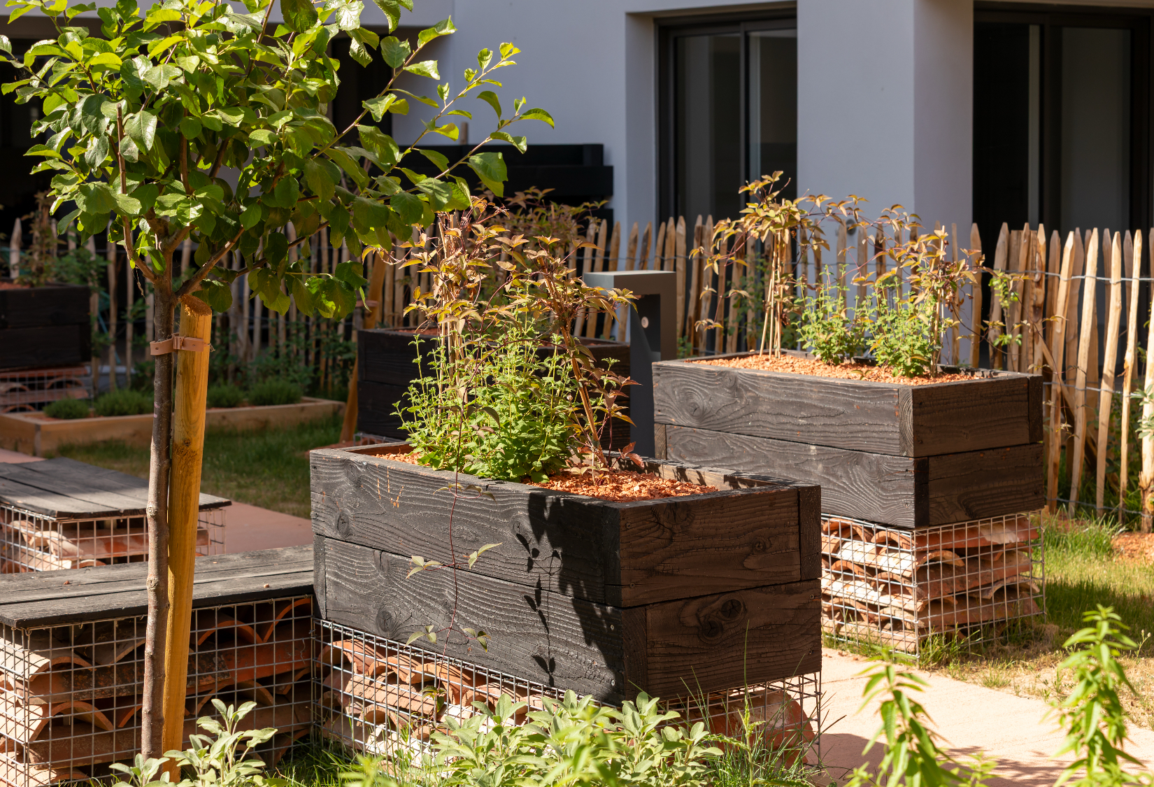 • Plantations d’herbes aromatiques dans des bacs à plantes