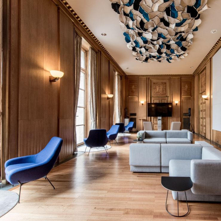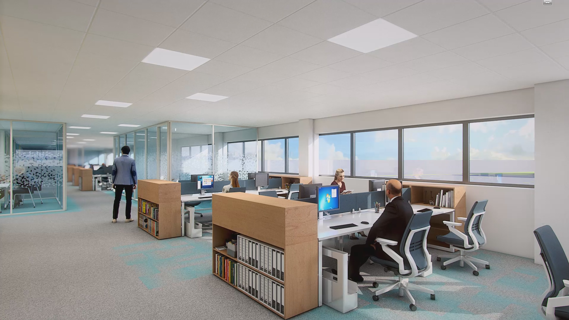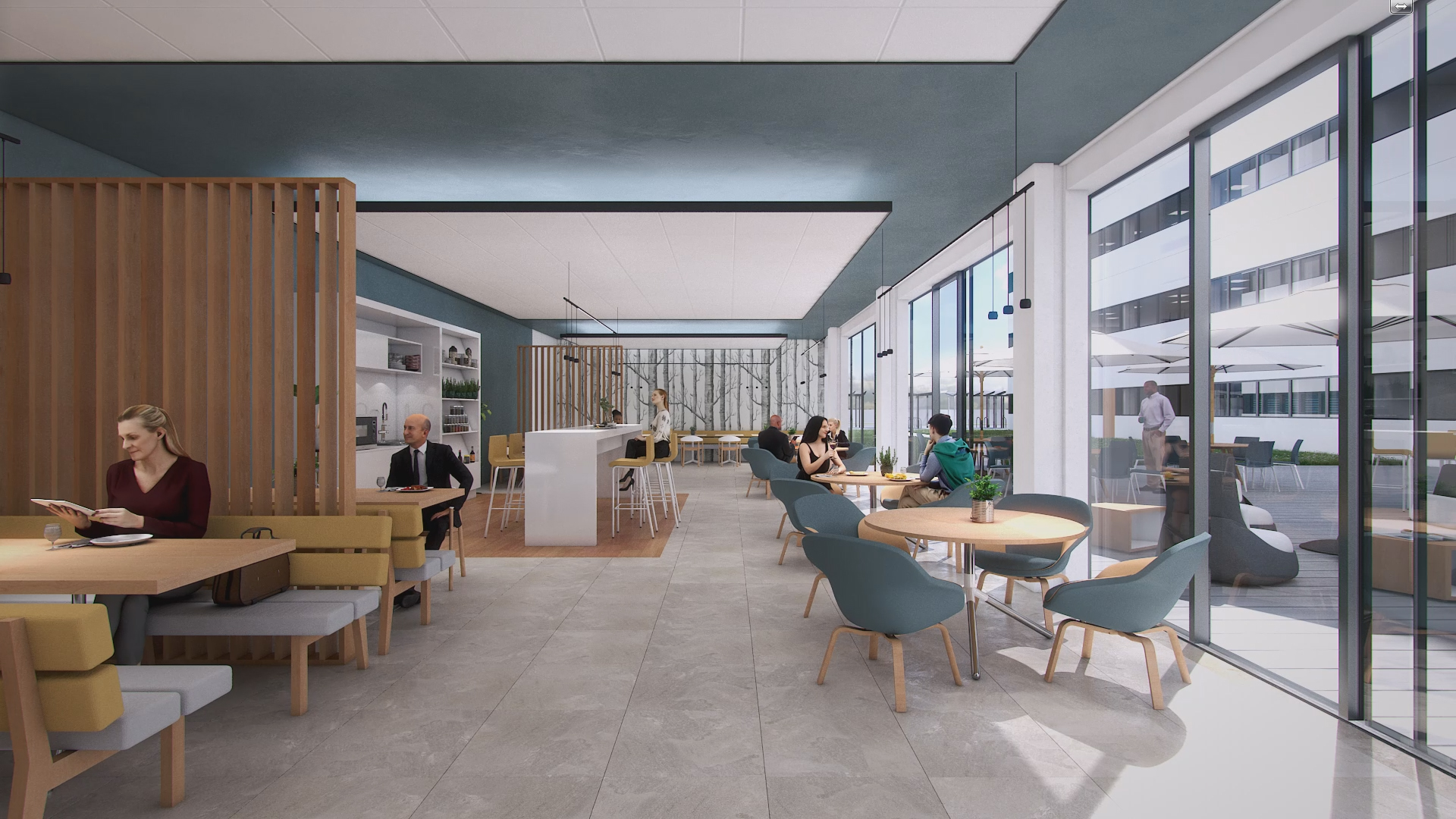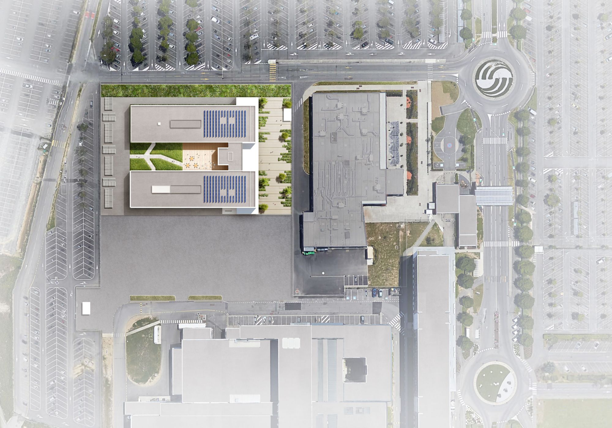 Le projet se présente en deux volumes principaux compacts et de forme géométrique rectangulaire simple, reliés par une passerelle habitée intégrant le hall d’accueil au rez-de-chaussée et des espaces de convivialité dans les étages.