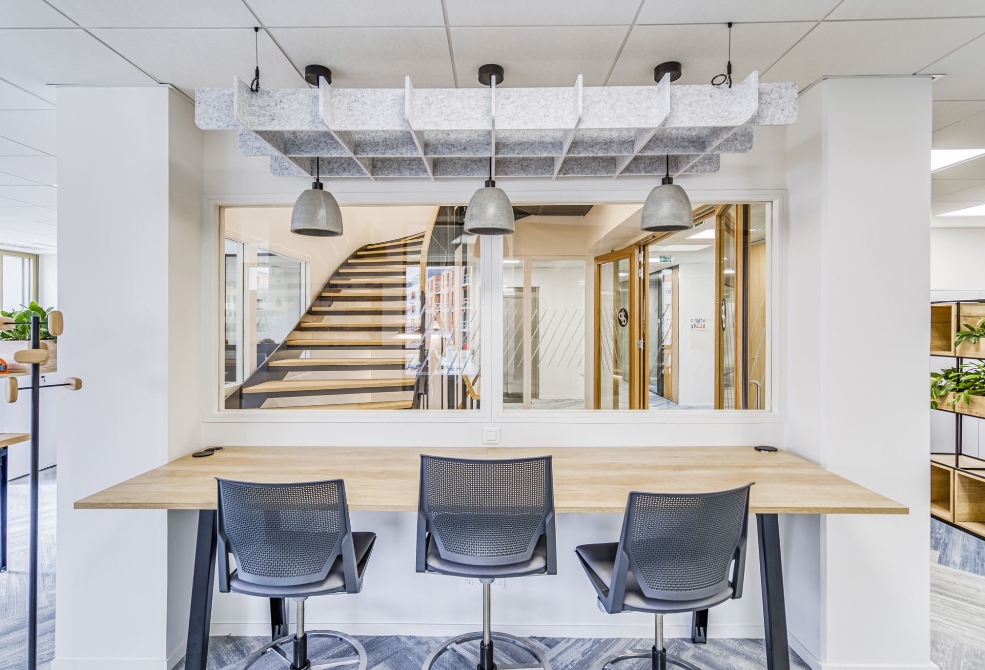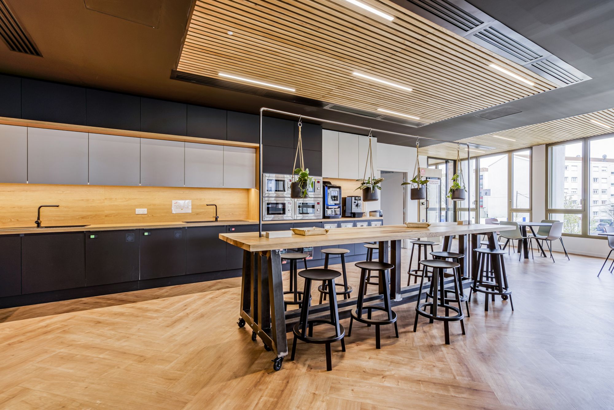 Dans une architecture de béton élégante et contemporaine conçue par le cabinet Z Architecture, ce projet porte sur 5 000 m², dont 2 500 m² pour le siège, aménagé par nos équipes lyonnaises. Une conception au service des nouvelles pratiques collaboratives et de la qualité de vie au travail.