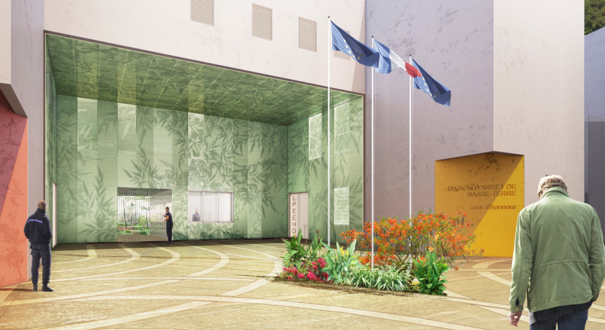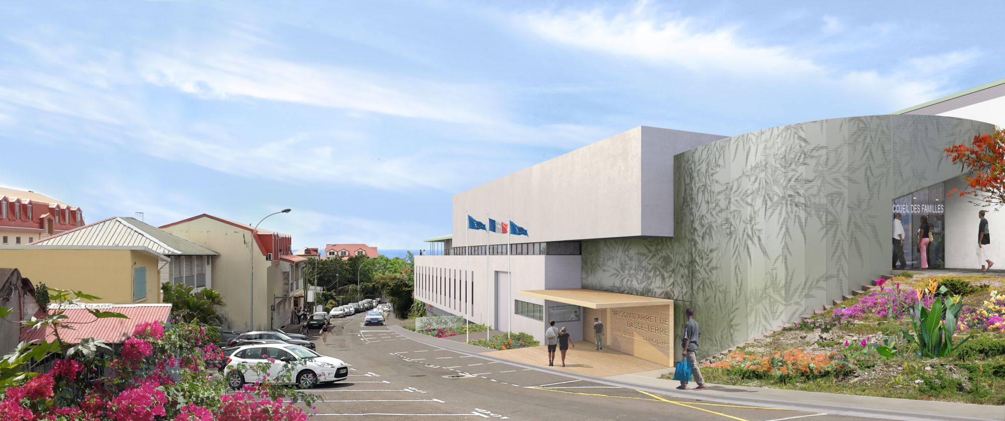 La proposition de la nouvelle maison d’arrêt de Basse-Terre menée par l’APIJ (Agence publique pour l’immobilier de la justice) témoigne d’un projet architectural fonctionnel et humaniste très bien intégré dans l’environnement immédiat des quartiers marqués par les époques. Les zones de détention s’ouvrent côté intérieur sur des cours végétalisées qui ont fait l’objet d’une attention maximum. Toutes les cellules bénéficient des vues pour contribuer à un certain apaisement. Ce concours a fait l’objet d’un dialogue compétitif.